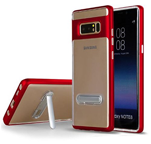 Samsung Galaxy Note 8 PC TPU Stand Case-Auroralove Samsung Note 8 Slim Clear Crystal TPU+Hard PC Frame Rubber Bumper Cover for Samsung Note 8 with Kickstand (Samsung galaxy note 8, Red)