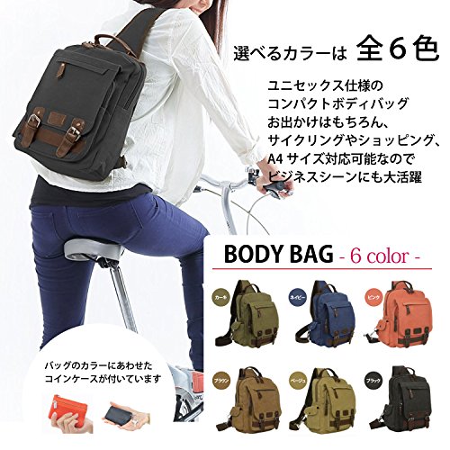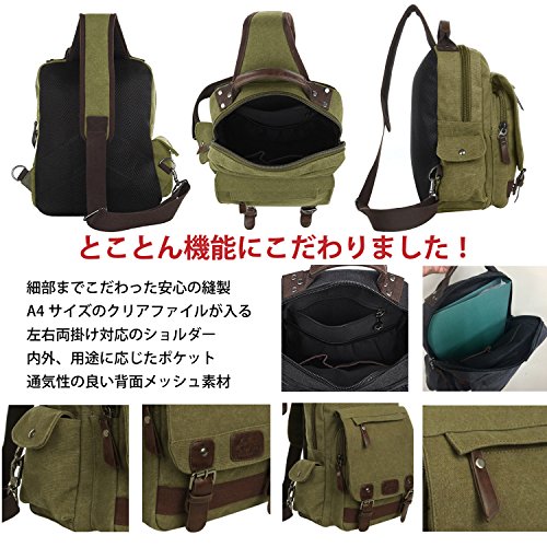 -. Feature : しっかりと丈夫なキャンパス生地を用いた男女兼用の本格的なワンショルダーバッグです。 / 右左どちらにも取り付け可能なショルダーベルトは肩への接地面が広く、長時間のご使用でも肩への負担を減らしてくれる疲れ知らずなバッグです。 さらに背中にあたる部分には幅広くメッシュ加工を施してあり、通勤ラッシュ時などのムレ防止にも一役買っております。春先から夏にかけて違いが分かる重要ポイント! / 【A4ファイル】【13インチのノートPC】がすっきり納まるサイズ…高さ:31.5cm(取手は含まず)×幅:25cm×奥行:13cm 特に収納量とサイズにこだわって企画した商品です。 / 【フロント】ファスナー付きポケット×2コ、オープンポケット×1コ【内部】ファスナー付きポケット×1コ、オープンポケット×3コ / 商品は、使い勝手の良いコンパクトな人気の小銭入れ付きのセットになっております。(小銭入れのサイズ:7.5cm×10.5cm×1㎝)