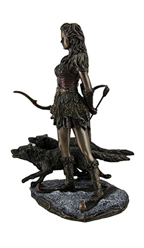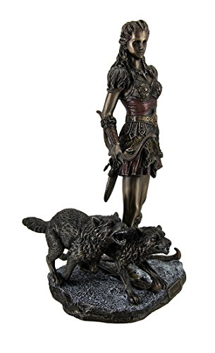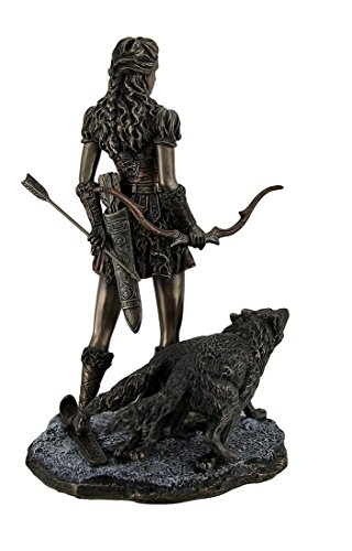 Resin Statues Skadi Norse Giantess Ski Goddess Of Winter And Mountains With Wolves Statue 8 X 10.5 X 7 Inches Bronze
