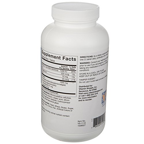 -. Binding : Health and Beauty -. Brand : Vitamin Shoppe -. EAN : 0766536011162 -. Feature : Single-celled freshwater algae that contains some of the highest levels of chlorophyll known / Also contains high levels of beta-carotene, iron and zinc / Dietary supplement / No artificial colors or flavors added / Natural food supplement with no preservatives -. IsAdultProduct : 0 -. Label : the Vitamin Shoppe -. Manufacturer : the Vitamin Shoppe -. MPN : 1038027 -. PackageQuantity : 1 -. PartNumber : 1038027 -. ProductGroup : Health and Beauty -. ProductTypeName : HEALTH_PERSONAL_CARE -. Publisher : the Vitamin Shoppe -. Size : 1,000 MG -. Studio : the Vitamin Shoppe -. Title : the Vitamin Shoppe Super Chlorella -. UPC : 766536011162