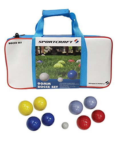 Studio : Sportcraft Publisher : Sportcraft Binding : Misc. Product Description For nearly 100 years, Sportcraft has brought together friends and families. Whether it was before the big game or at a family picnic, Sportcraft's recreational games were there. Pack up the car, grab your friends and let us help you Fuel The Good Times! Sportcraft Bocce Set in a convenient carrying bag contains 8 90mm molded composite material Bocce balls with two different scoring patterns (2 blue, 2 grey, 2 yellow, and 2 red) and one 40mm Pallino ball. Fun for the entire family! 0
