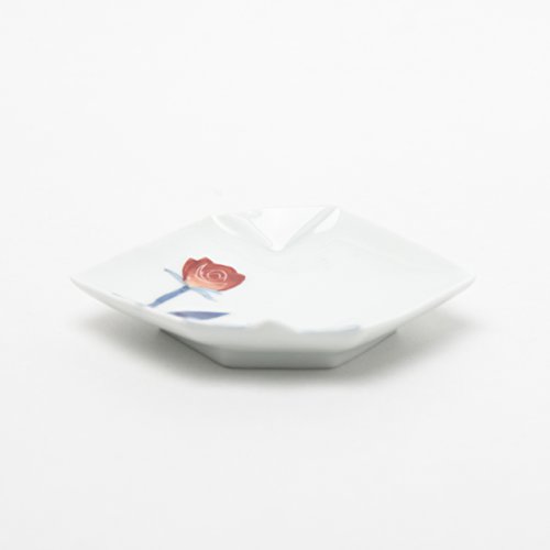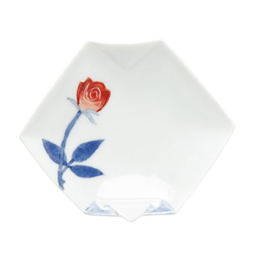 원본상품명: 有田? おてしょ皿(折紙型) 赤バラ 10.5cm ?平窯 dep1692