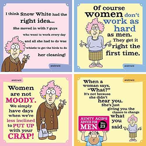 Tree-Free Greetings Hilarious Aunty Acid Magnet 4 Piece Set, 3.5 x 3.5 Inches, Snow White Magnets (FM31189)