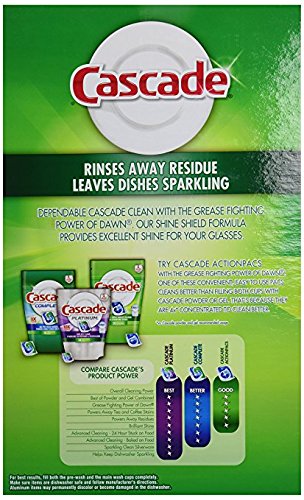 Studio : Cascade Publisher : Cascade Binding : Health and Beauty Product Description Get every mealtime off to a sparkling start with Cascade Powder dishwasher detergent. Featuring the trusted grease-fighting power of Dawn, Cascade Powder rinses away residue, leaving your dishes sparkling-and ready for your next mealtime masterpiece. For clean, shiny dishes, trust Cascade Powder dishwasher detergent. 0