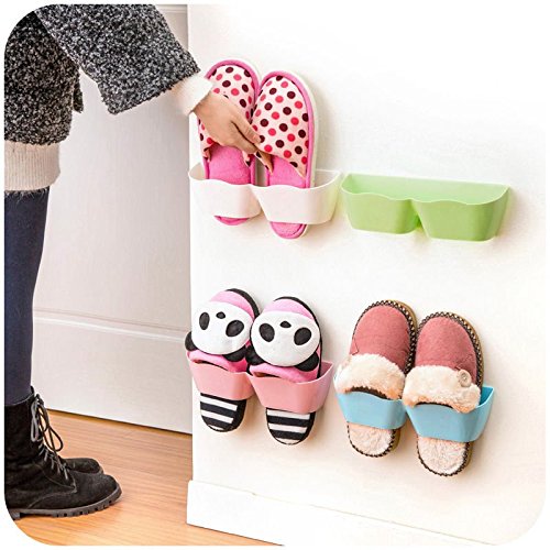 -. Title : New Home Plastic Adhesive Shoe Rack Wall Hanging Storage Shelf Organizer Hanger Blue