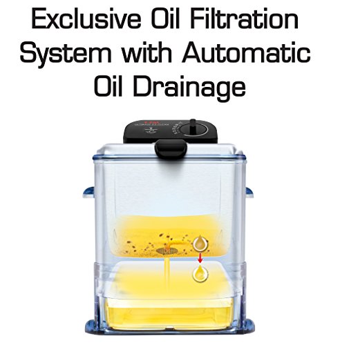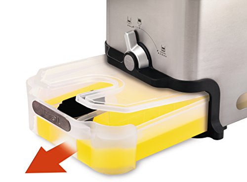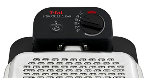 Prepare all your fried favorites for the entire family with the T-fal fr8000 ultimate EZ clean deep fryer. This T-fal deep fryer features a unique oil filtration system which automatically drains and filters oil for future use. The oil is stored in a separate, sealed plastic container for easy storage until the next use. The T-fal fr8000 ultimate EZ clean deep fryer also has an advanced oil temperature heating system which provides the ideal frying temperature to help seal the food's exterior for minimal oil absorption and healthier fried foods. The powerful 1,700-watt heating element quickly rebounds to the selected oil temperature with the adjustable thermostat for crispy fried foods. The T-fal Utimate EZ clean deep fryer has a nice family capacity and the optimal relationship between oil capacity (3.5l) And food capacity (2.65 Lbs.) Keeps oil absorption to a minimum for healthier fried foods. Enjoy crispy chicken wings, tasty onion rings and delicious French fries.Feature