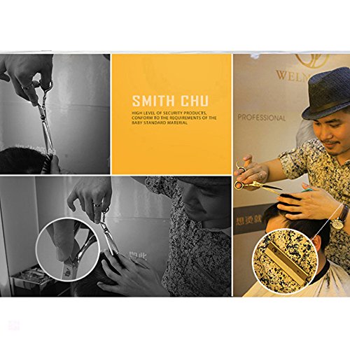 Feature : Brand Material: Stainless Steel / Regular Hair Scissors Size:170X60X13mm / Thinning Scissors Size:170X60X10mm / Color:Pink,blue / Package include:1 Scissors