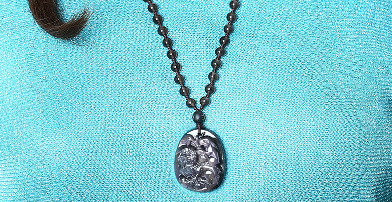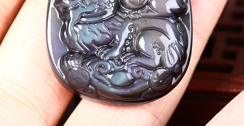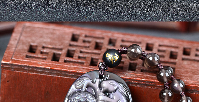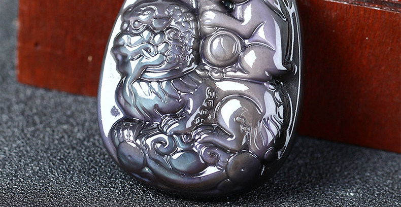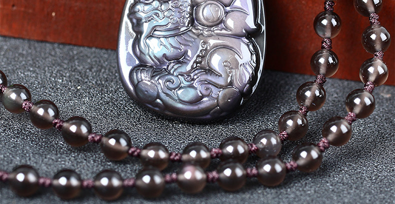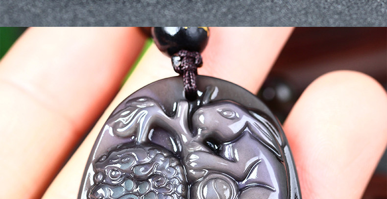 开光属狗翘色彩虹眼黑曜石狮兔送福玉兔抱瓶生肖开运吊坠