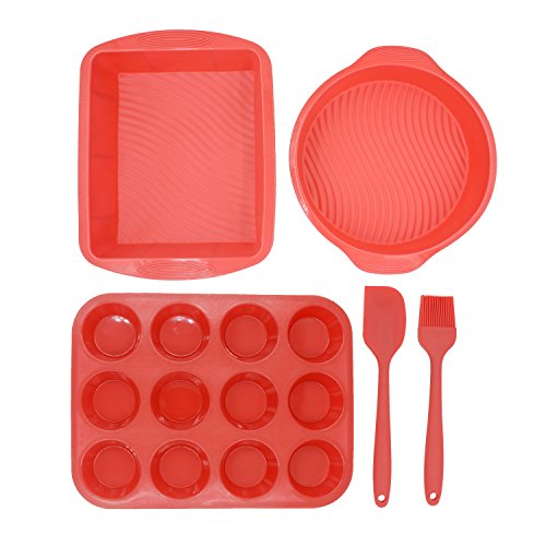 What You Get in the Box 1×Rectangle Cake Mold - 11.2"×8.9"×2.4" 1×Round Cake Mold - 9.6"×2.6" 1×12-cup Muffin Cupcake Mold - 12.9"×9.6"×1.2" 1×Spatula - 10.6"×2.2" 1×Basting Brush - 10.2"×1.8"