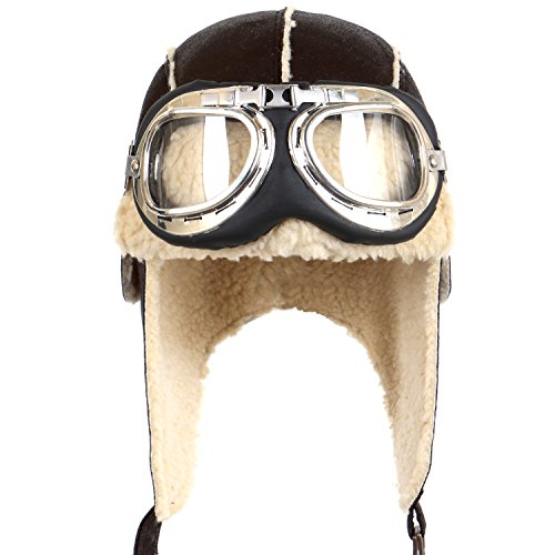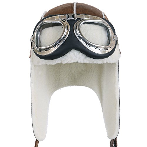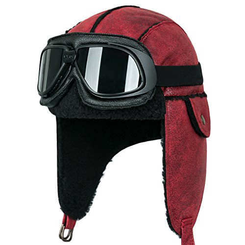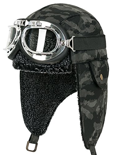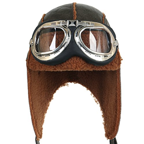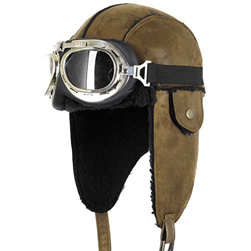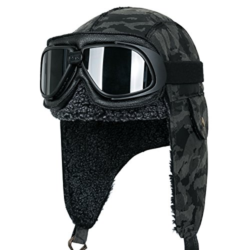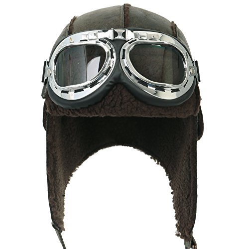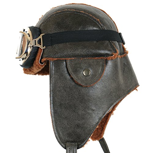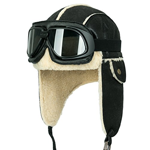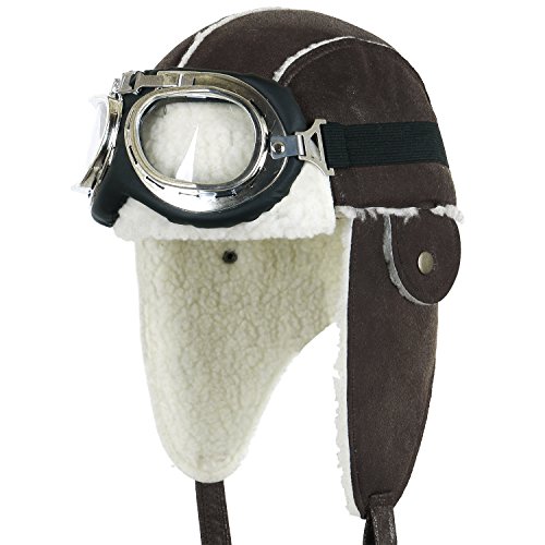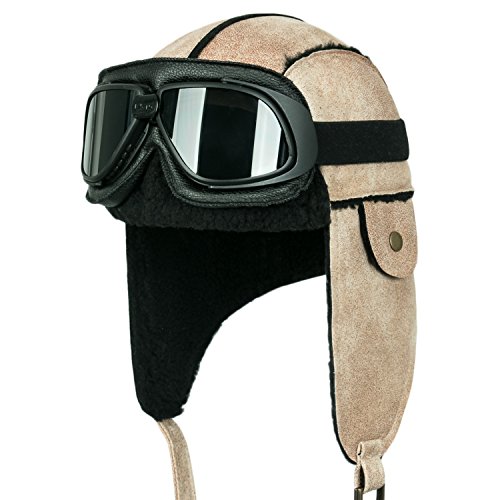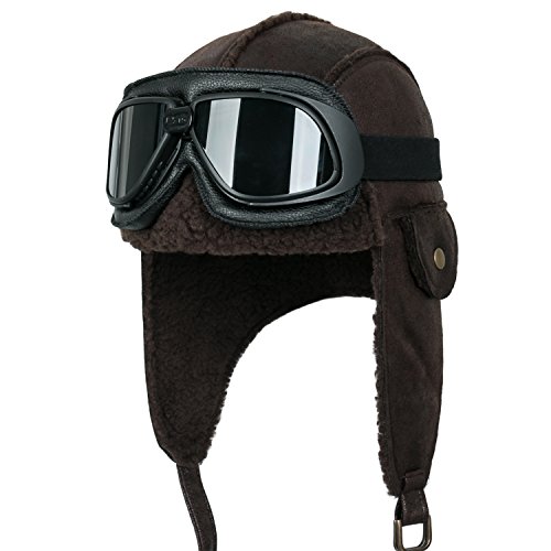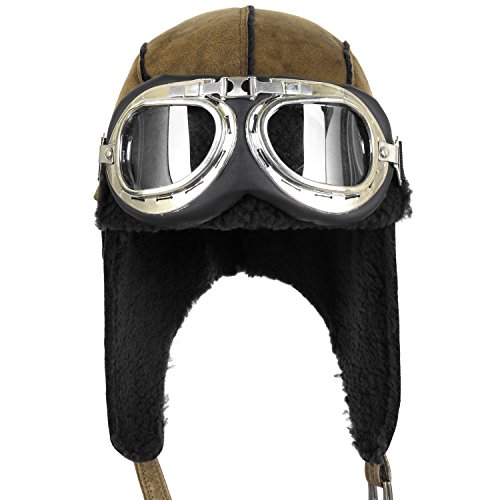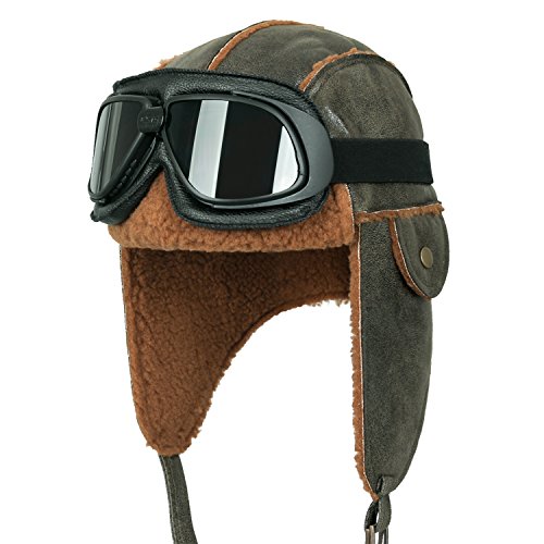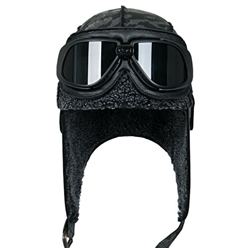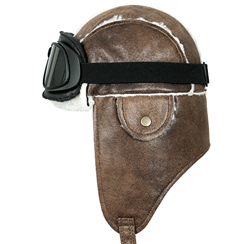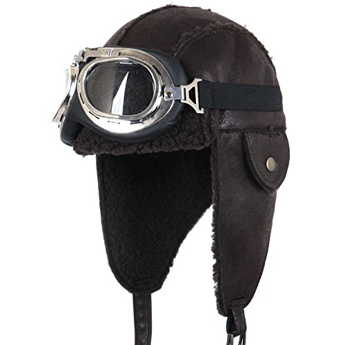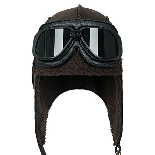 | ililily Aviator Hat Winter Snowboard Fur Ear flaps Trooper Trapper Pilot Goggles |