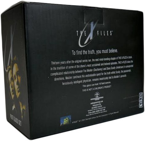 Studio : Underground Toys Publisher : Underground Toys Product Description From Underground Toys. Do you want to believe, and stay hydrated at the same time? Yes? Then do we have the drinking glass for you! Featuring the X-Files logo and slogan: I WANT TO BELIEVE, this excellent officially licensed X-Files Pint Glass is an easy yes for any fan of the long running title. 0