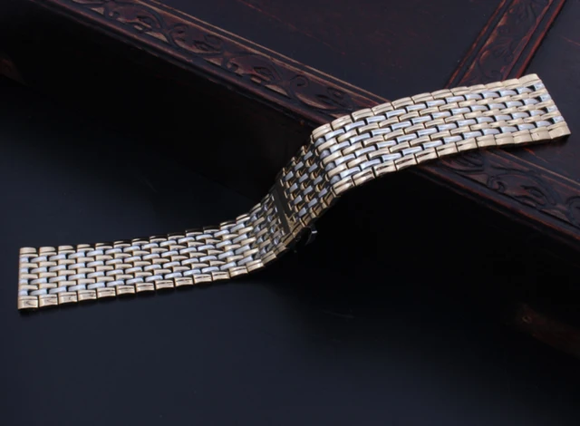 색상: 실버 골드 폭: 22 미리메터 길이: 17.5 센치메터 Thikness: 3.5 미리메터 재질: 스테인레스 스틸 시계 버클: 배포 시계 버클 패키지: 1 스트랩 1 개 로딩 도구 및 3 개 핀 비고:위해 지연, 당신의 크기 및 색상 주문 많은 감사드려요