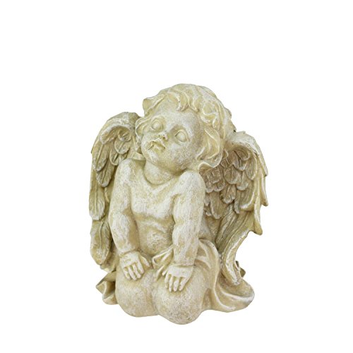 Northlight Heavenly Gardens Distressed Kneeling Cherub Angel Outdoor Patio Statue, 6", Almond Brown