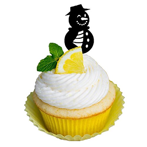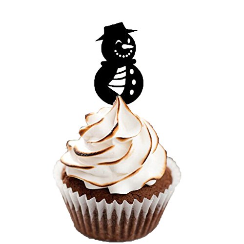 Ecape Christmas Cupcake Toppers Snowman Cupcake Picks Party Cupcake Decoration Pack of 8 Acylic Black