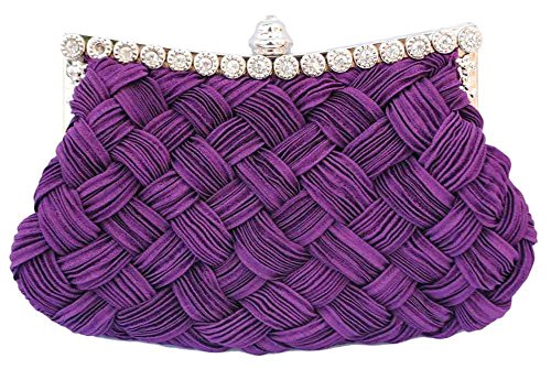 Chicastic Pleated and Braided Rhinestone studded Wedding Evening Bridal Bridesmaid Clutch Purse - Purple