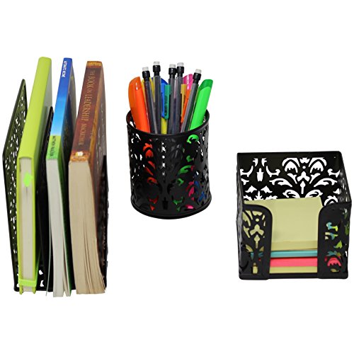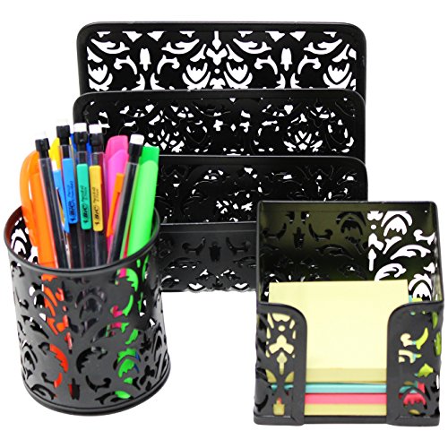 - PROFESSIONAL YET STYLISH ORGANIZER - Whimsical Floral Cut Out Design Gives This Desk Top 3 Piece Caddy Great Appeal. Keep Your Home or Office Looking Professional and Organized with This Affordable Tabletop Storage Bin Set. Perfect for Men, Women and Students.