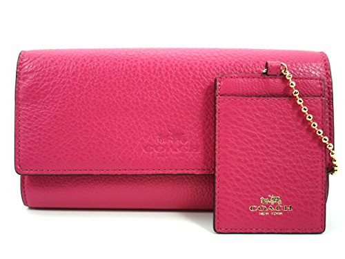 -. Title : Pebbled Leather Trifold Wallet w/Chain ID Card F53708 Dahlia Pink