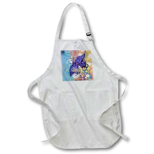 3dRose apr_164124_4 Butterfly Purple Grunge Digital Art by Angelandspot Full Length Apron with Pouch Pockets, 22 by 30-Inch, Black, with Pockets