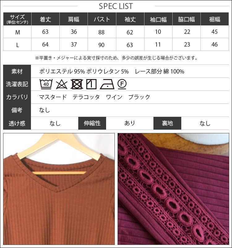 素材:ポリエステル95% ポリウレタン5% レース部分 綿100%