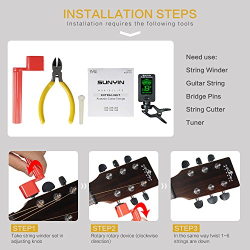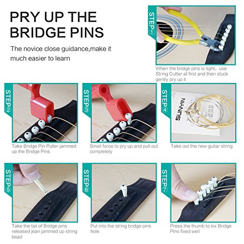 SUNYIN Acoustic Guitar Tool,Kit for Starter with Guitar Strings Winder Cutter Tuner Bridge Pins Picks & Pick Holder,Everything Set for Change the String-ordinary