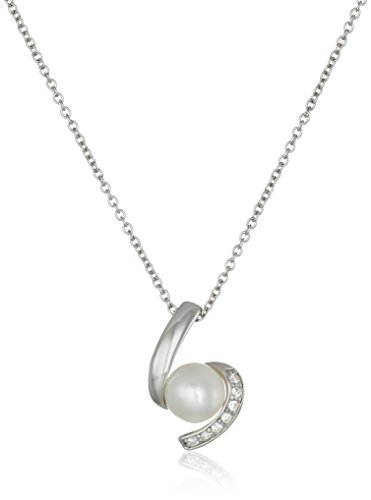 Platinum-Plated Sterling Silver Cubic Zirconia Freshwater Cultured Pearl Pendant Necklace