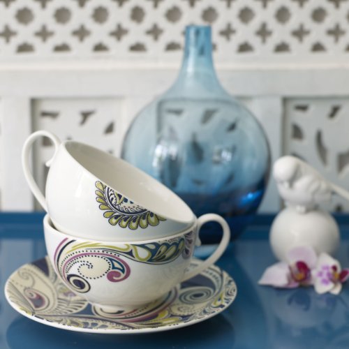 -. Feature : Monsoon cosmic tea saucer / Material: porcelain / Each piece of pottery is painstakingly glazed by skilled craftsman / Strong, durable and chip-resistant / Dishwasher and microwave safe