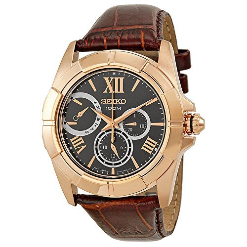 세이코import 세이코 Seiko Classic Rose Gold-tone Stainless Steel Brown Leather Mens Watch SNT046 남성 맨즈 손목시계 【병행수입품】