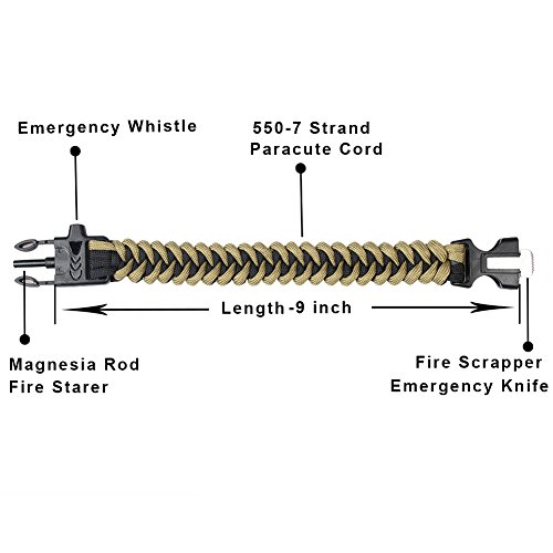 ►STRONG, DURABLE AND VERSATILE: Our Paracord bracelet measures 9 inches in length and 1.2 inches in width and 30 gram .It will be ideal equipment for you during adventure trip, hiking, camping, Hunting and nearly every situation.