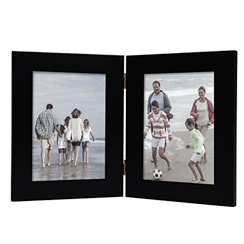 -. Title : Adeco [PF0165] Decorative Black Wood Hinged Table Desk Top Picture Photo Frame, 2 Vertical Portrait Openings, 5x7 inches