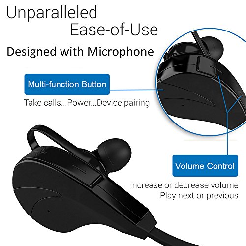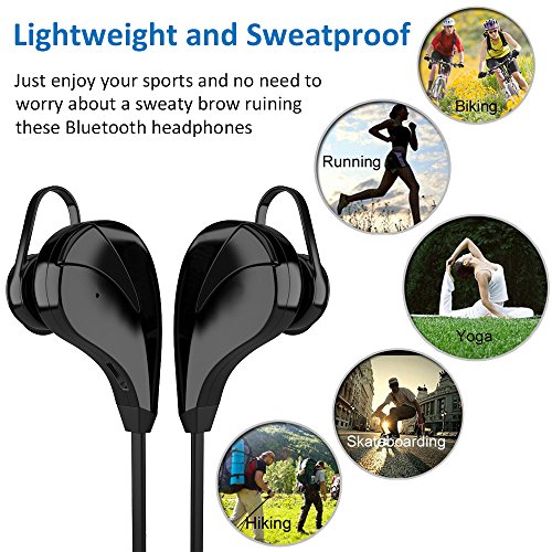 Ultra lightweight and sweatproof bluetooth earphone. No worry about a sweaty brow ruining these Bluetooth headphones with mic when doing sports