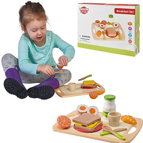 -. Title : Pretend Play Food Wooden Breakfast Playset By Dragon Drew (13 PC Set)