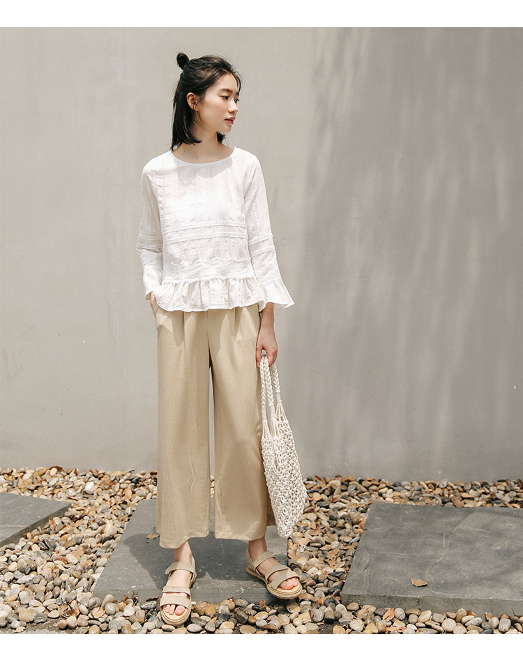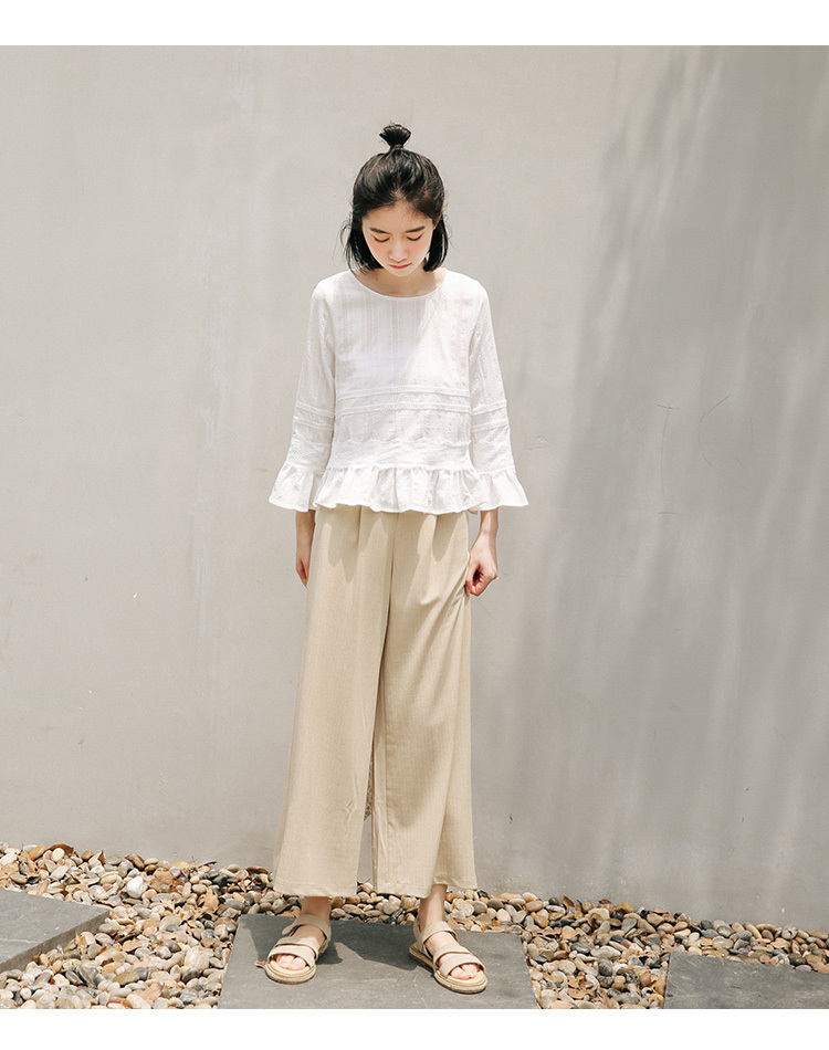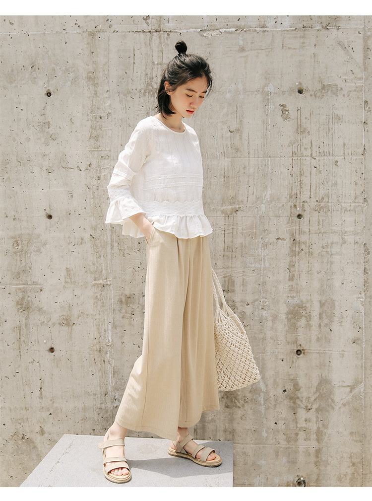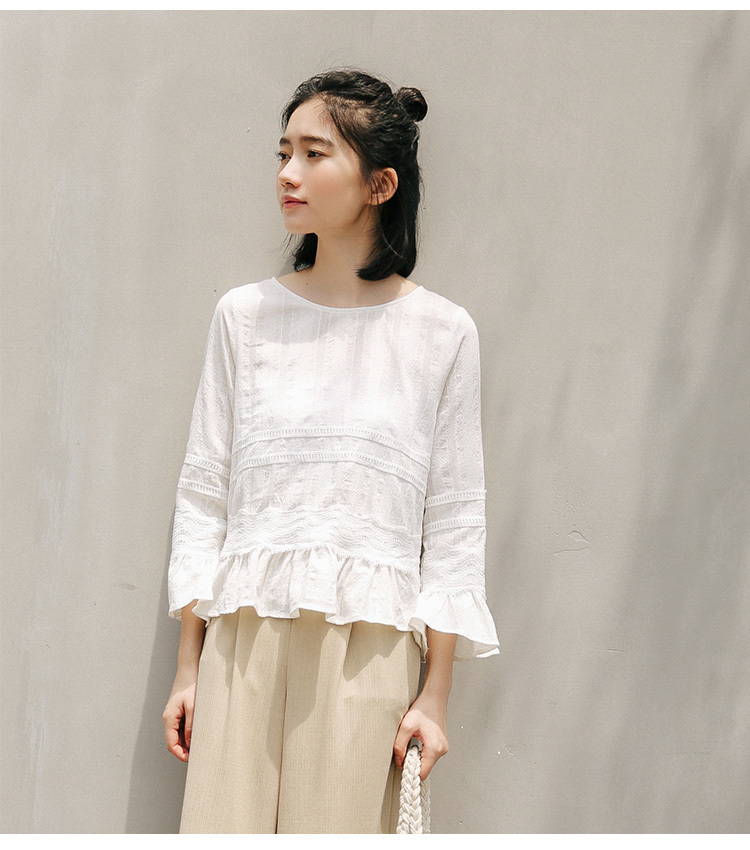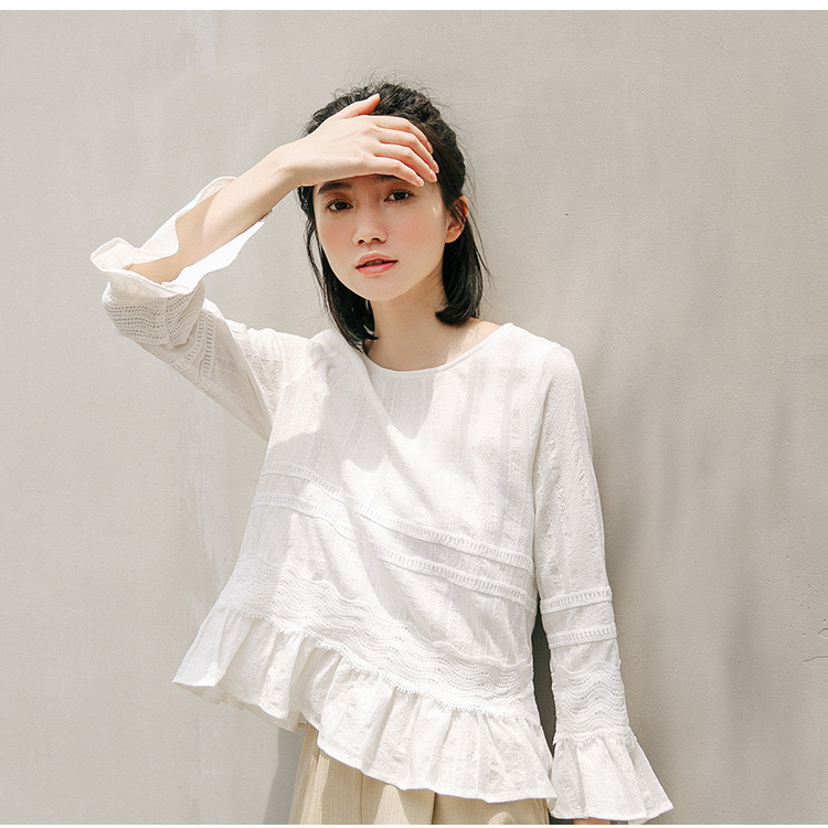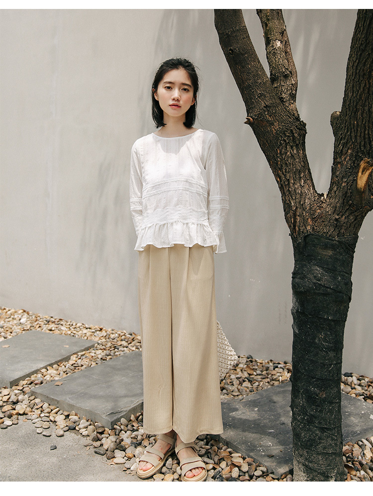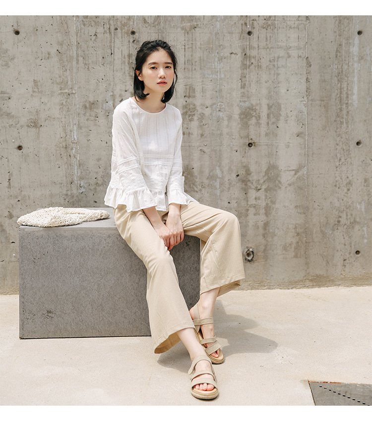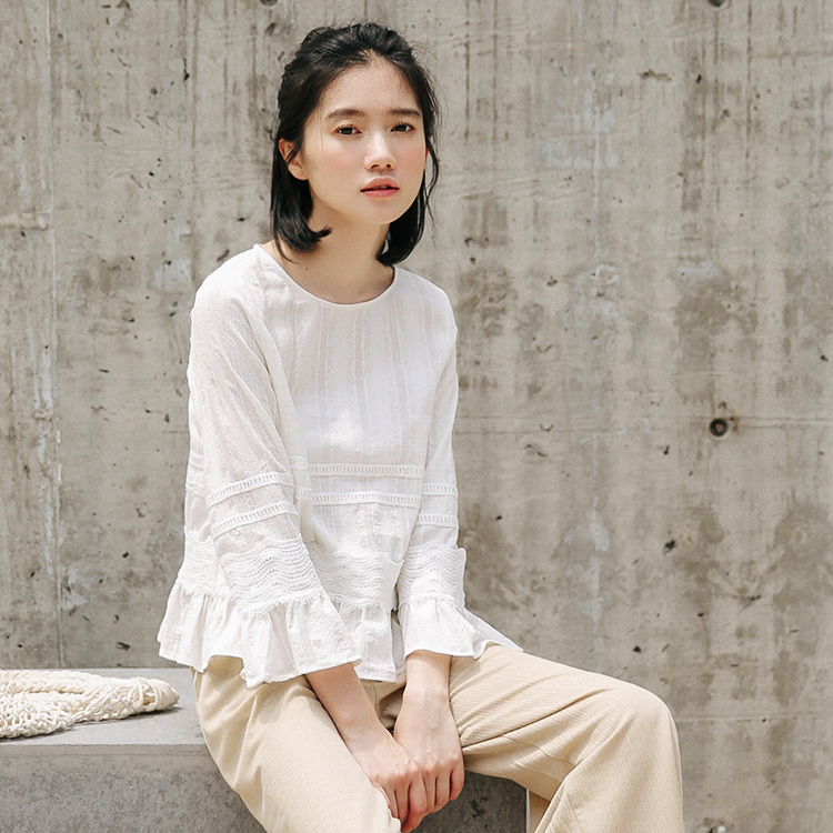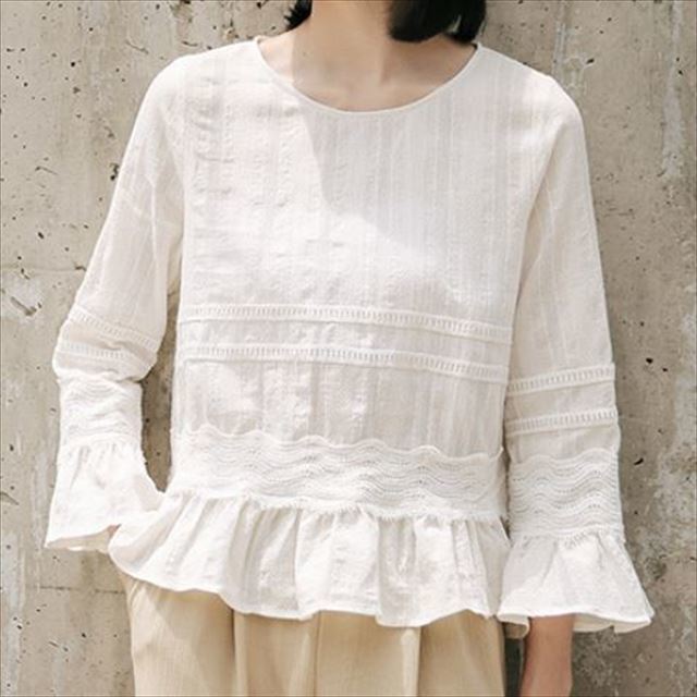 程よいフリル感が甘くなりすぎないナチュラルブラウスのご紹介です。