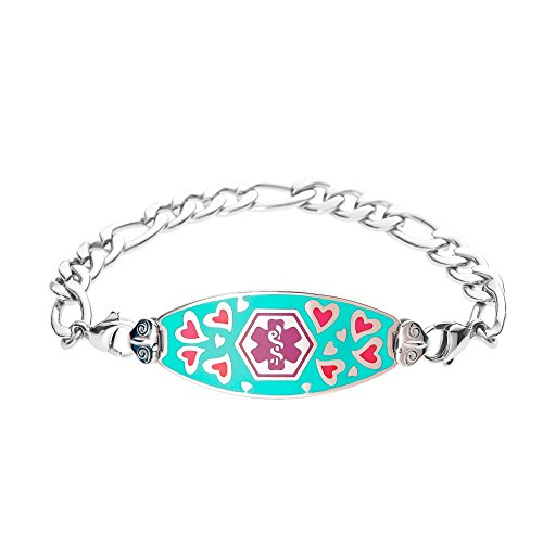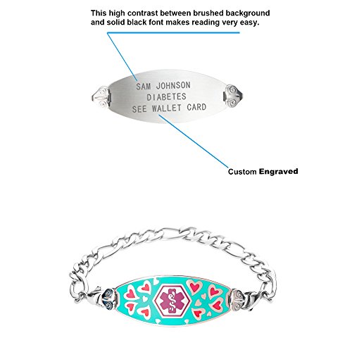 -. Binding : Jewelry -. Brand : Divoti -. Department : womens -. Feature : Easily provide your custom engraved content by selecting the CUSTOMIZE NOW button to the right. / Custom engraved in high contrast black laser engraving to personalize your medical message (on back : 4 lines of 18 characters, spaces included) / Hypoallergenic 316L medical alert bracelet and comes with size options 6.0-8.5 inches. / Deep embossed caduceus symbol with hard enamel filled on the front of medical alert bracelet. Excellent wear resistance. / Includes free customizable medical alert wallet card, medical alert smartphone apps and Velvet gift bag. -. Label : Divoti Inc. -. Manufacturer : Divoti Inc. -. Model : 5170PU -. MPN : 5170PU -. PartNumber : 5170PU -. ProductGroup : Jewelry -. ProductTypeName : FASHIONNECKLACEBRACELETANKLET -. Publisher : Divoti Inc. -. Studio : Divoti Inc. -. Title : Divoti Custom Engraved Loving Heart Medical Alert Bracelet -Figaro Stainless-Purple