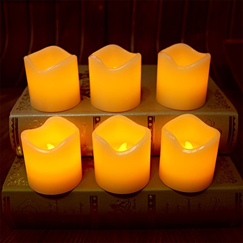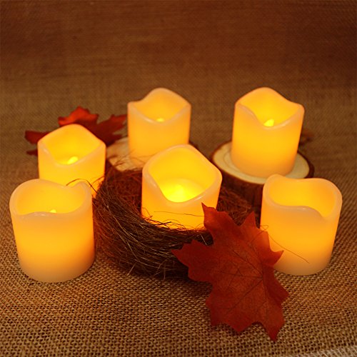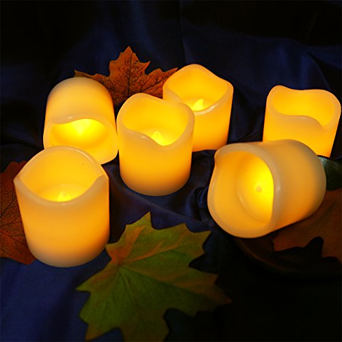 Set Of 6 unscent IC-controlled Flickering Flameless Candles With Timers(6 Hours On And 18 Hours Off)