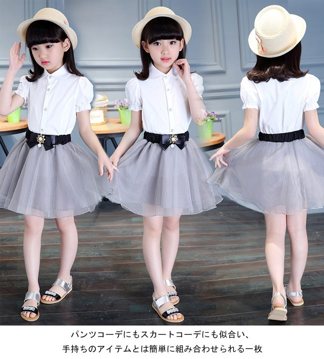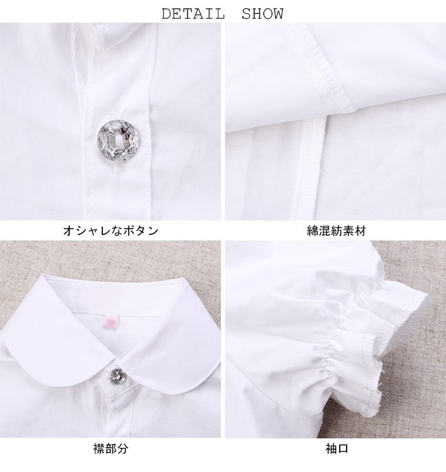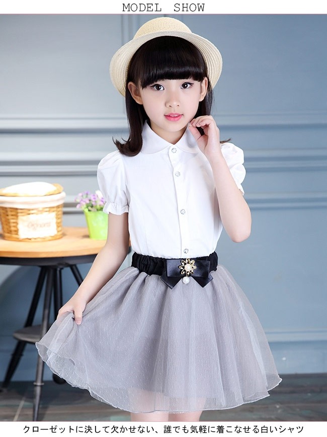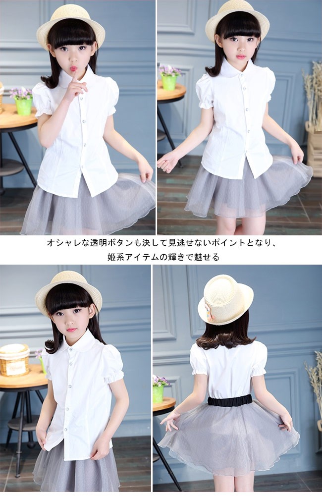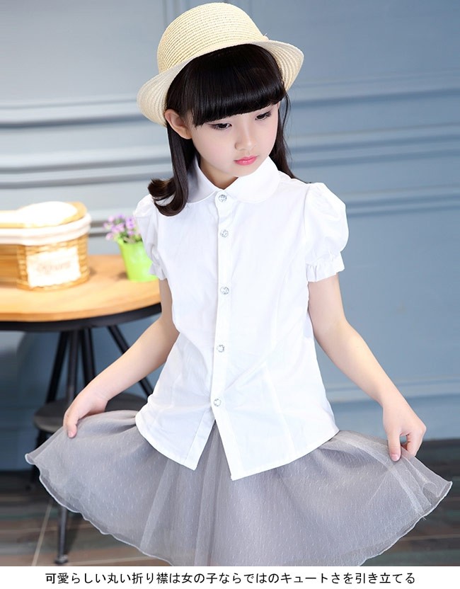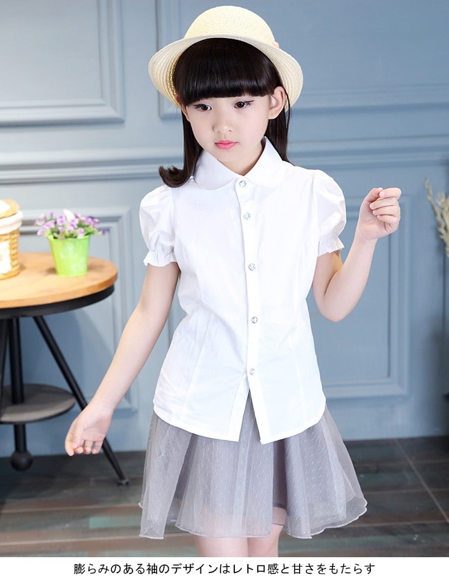 子供服 シャツ 女の子 半袖 白シャツ 着まわし 女児 トップス 夏物 バルーンスリーブ レトロ キッズ 半袖シャツ キュート女の子用の半袖シャツが登場クローゼットに決して欠かせない、誰でも気軽に着こなせる白いシャツ膨らみのある袖のデザインはレトロ感と甘さをもたらす可愛らしい丸い折り襟は女の子ならではのキュートさを引き立てるオシャレな透明ボタンも決して見逃せないポイントとなり、姫系アイテムの輝きで魅せるパンツコーデにもスカートコーデにも似合い、手持ちのアイテムとは簡単に組み合わせられる一枚*丸型とスクエア型の2タイプのボタンをランダムに発送させていただきますカラー:写真色素材 綿混紡サイズ(cm) 120 130 140 150 160120 着丈46 バスト68 肩幅27130 着丈49 バスト72 肩幅28140 着丈52 バスト74 肩幅29150 着丈55 バスト78 肩幅30160 着丈58 バスト82 肩幅31ご注意:※サイズは平置きサイズです。素人採寸ですので、若干の誤差がございます、ご了承ください。