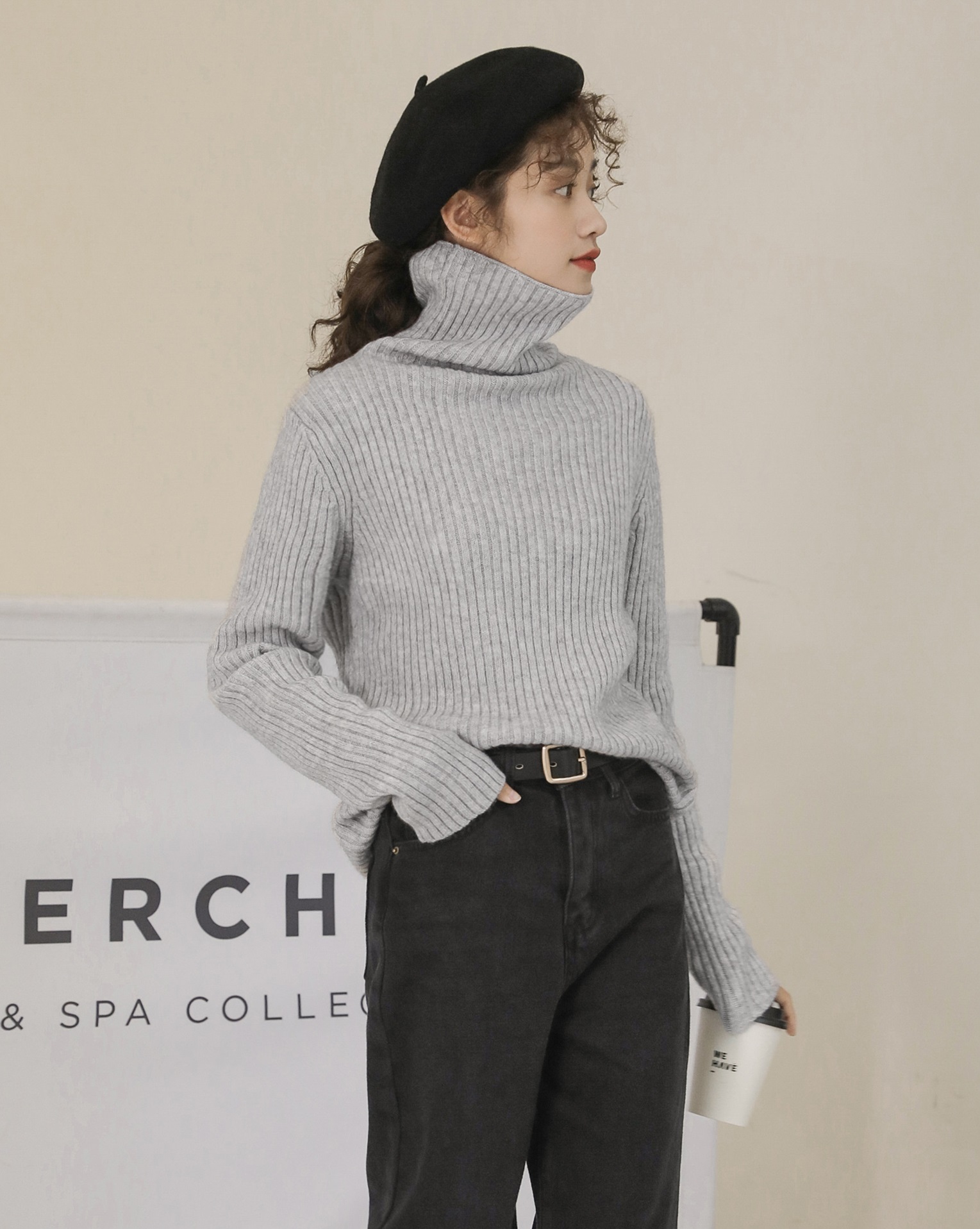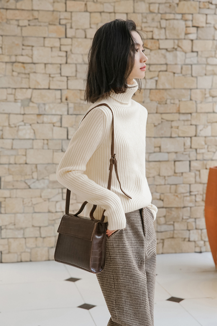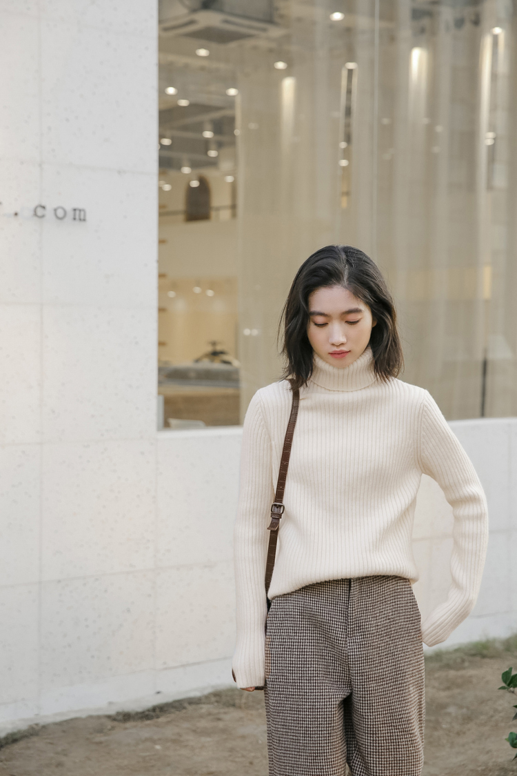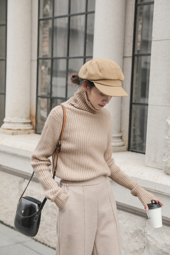 落ち着きのある雰囲気が魅力的なコンパクトなリブニットトップスです。