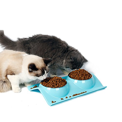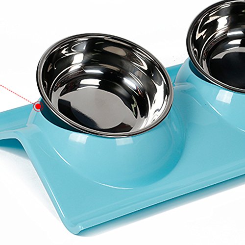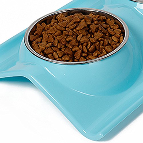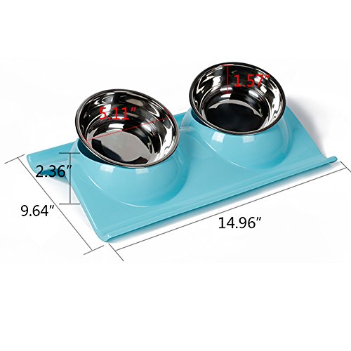 PEACH - Stainless Steel Double Cat Bowl - Dog Kitties Pet Feeder No Spill Non Skid Deluxe Bowls Food Holder Feeding Tray Water Bowl