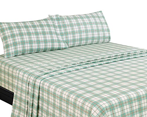 American Homes CTFLNLWHBDPLDGTL3 Wilshire Hill Cotton Flannel Printed Braeden Plaid Sheet Set, Queen, Gray/Teal