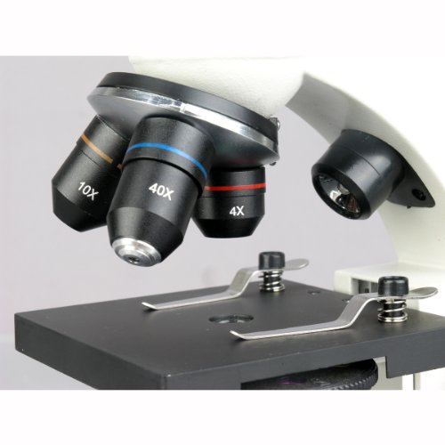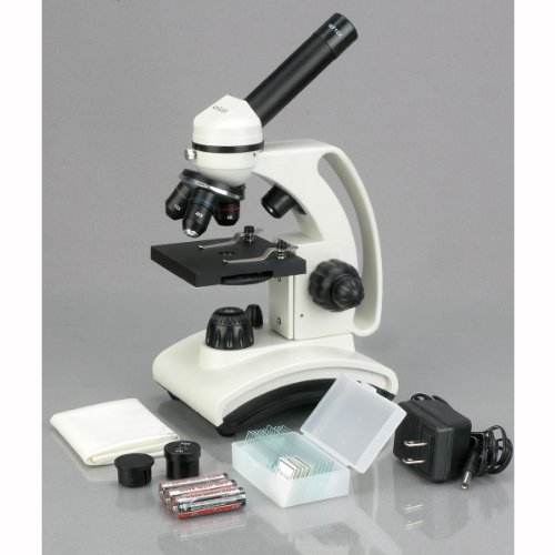 AmScope M160C-2L-PB10-E Digital Cordless Compound Monocular Microscope, WF10x and WF25x Eyepieces, 40x-1000x Magnification, Upper and Lower LED Illumination with Rheostat, Brightfield, Single-Lens Condenser, Coaxial Coarse and Fine Focus, Plain Stage, 110