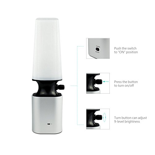 9 levels brightness adjusted, You can choose your favorite colors by touch the rainbow colorful circle with your finger, long press the switch for three seconds,it will change color automatically.Low-power night light, can work for more than 6 hours when full charged,creating a romantic and warm atmosphere, make the party, children's play, sleeping more wonderful
