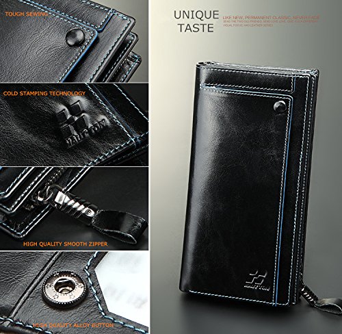 -. Binding : Apparel -. Brand : HAUT TON -. Department : mens -. Feature : 【HIGH QUALTIY MATERIAL】100% full grain vintage cow Leather,high quality hardware and zipper / 【DURABLE MATERIAL AND EXQUISITE TECHNOLOGY】Through waterproof test , smoothly oxidation resistant alloy zipper, precision hand sewing / 【LARGE CAPACITY】You can put Iphone 6S/Plus , larger bills , checkbook and cards , Size -- approx : L19.5cmXW10cmXH2.8cm / 【CAPACITY DETAILS】16 x Card Slots, 1 x Transparent ID Window , 2 x Large Bill compartments ,1 x Checkbook Compartments , 1 x Zipper Pocket / 【GIFT-WRAP AVAILABLE】: 1X gift bag, 1X gift box in the package. -. ProductGroup : Apparel -. ProductTypeName : ACCESSORY -. Title : HAUT TON Men's Genuine Leather Long Clutch Organizer Purse Wallet