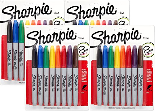 Sharpie Permanent Marker Fine Tip 4 packs of 8 Markers