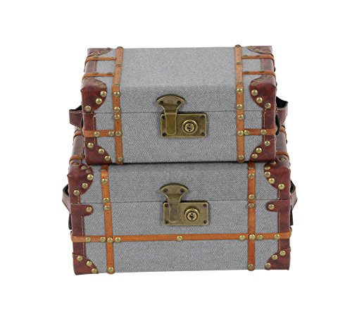 Deco 79 54072 Wood and Burlap Rectangular Boxes (Set of 2), Purple/Brown.Gold