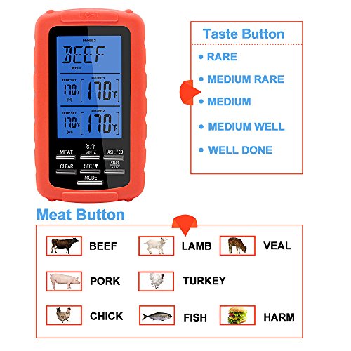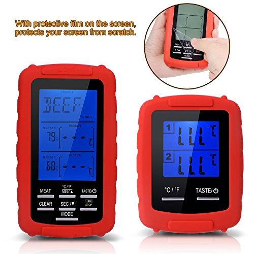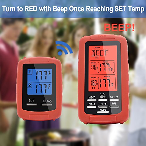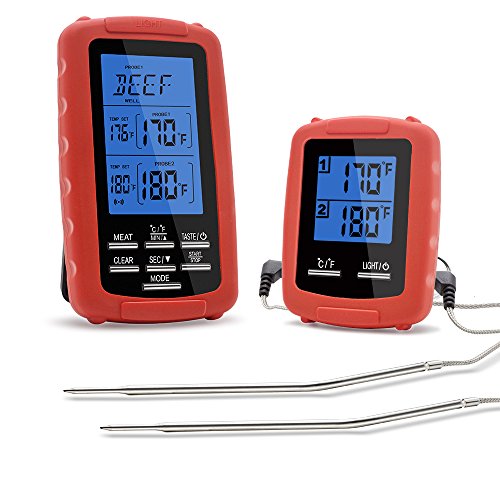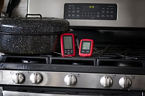 Wireless digital meat thermometer with dual probe monitors food and/or oven/grill/smoker temps up to 300 feet away, enabling you to enjoy your company without continuously excusing yourself