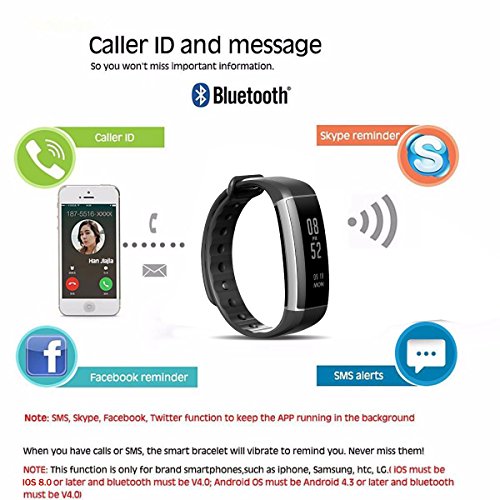 Calls & SMS & SNS & Sedentary Alert: It will vibrate to alert you if your phone receives a phone call, SMS text and SNS messages including Facebook, Twitter, WhatsApp, Linkedin, Instagram, Messenger, etc. Simply connect the bracelet to your smart phone via Bluetooth and set in the app, you will never miss a call and a message. Open the "Sedentary Alert" function in the app, it will vibrate to remind you to move if you stay at your seat for a long time.