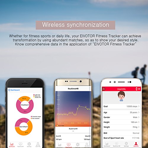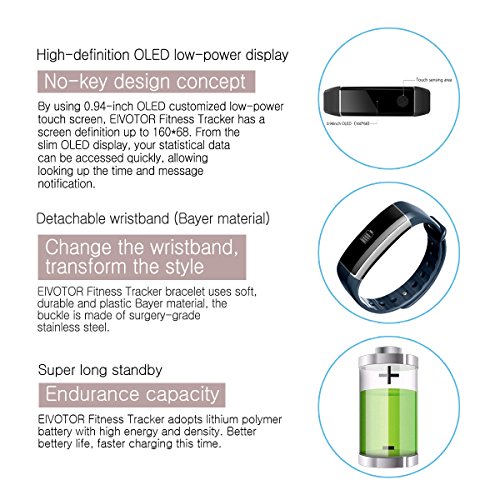 Fitness Tracker, EIVOTOR Smart Waterproofer Wristband Pedometer with Heart Rate Monitor for Sports, Sleepings, Compatible with Android 4.3 / iOS 8.0 and above System