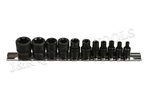 J&R Quality Tools 11 pc FEMALE E-TORX (Star) SOCKET Set w/RAIL E4 - E20 …