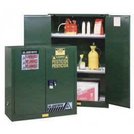 -. Title : JUSTRITE MANUFACTURING 896004 Green 18 Gauge CR Steel Sure-Grip EX Pesticides Safety Cabinet with 2 Manual-Close Door, 60 gal Capacity, 34" W x 65" H x 34" D, 2 Shelves