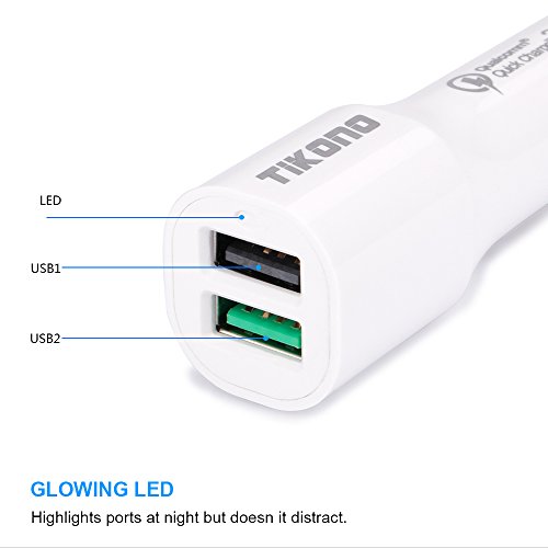 Quick Charge 3.0 Dual USB Car Charger, TIKONO PowerDrive Speed 2 for Galaxy S7 / S6 / Edge / Plus, Note 5 / 4 and PowerIQ for iPhone 7 / 6s / Plus, iPad Pro / Air 2 / mini, LG, Nexus and More (Black)