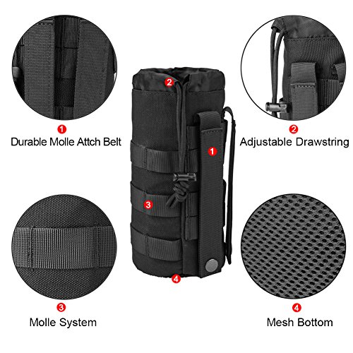 Sports Water Bottles Pouch Bag Tactical Molle Water Bottle Pouch Military Drawstring Water Bottle Pouch Holder Mesh Water Bottle Carrier Attachment Bottle Sling Bag with Pouch ACU Camouflage
